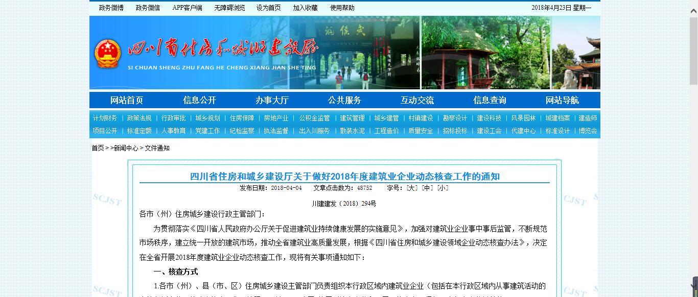 川建建發〔2018〕294號 各市(州)住房城鄉建設行政主管部門: 為貫徹落實《四川省人民政府辦公廳關于促進建筑業持續健康...