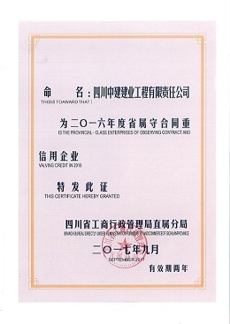 四川中建建業工程有限責任公司被命名為“二〇一六年度省屬守合同重信用企業”