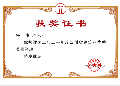近日,四川省建筑業協會發文表彰了一批2021年度四川省建筑業先進企業和四川省建筑業企業優秀經理項目經理,四川中建建業工程有限責任公司榮獲四川省建筑業先進企業稱號,公司董事長何正剛榮獲四川省建筑業企業優秀經理稱號,公司副總經理、一級建造師薛濤榮獲優秀項目經理稱號。
